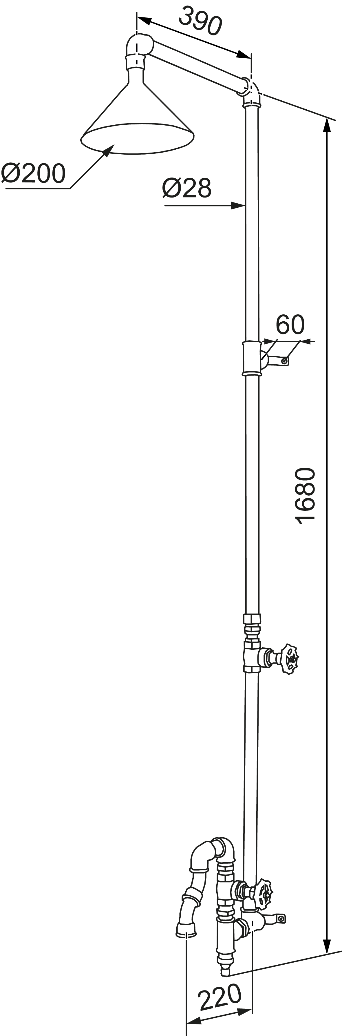 • Sie verfügt über zwei Duschköpfe: eine Kopfbrause und einen unteren Hahn