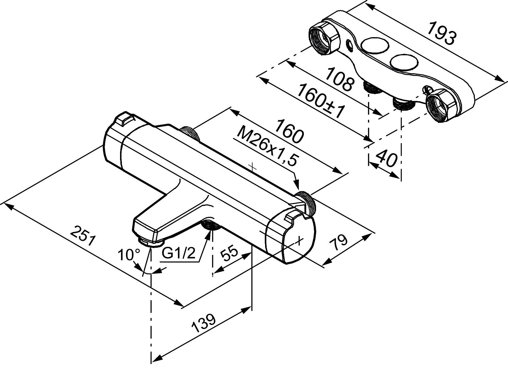 - Med vändbart blandarfäste 40-160 c/c FMM 2096
