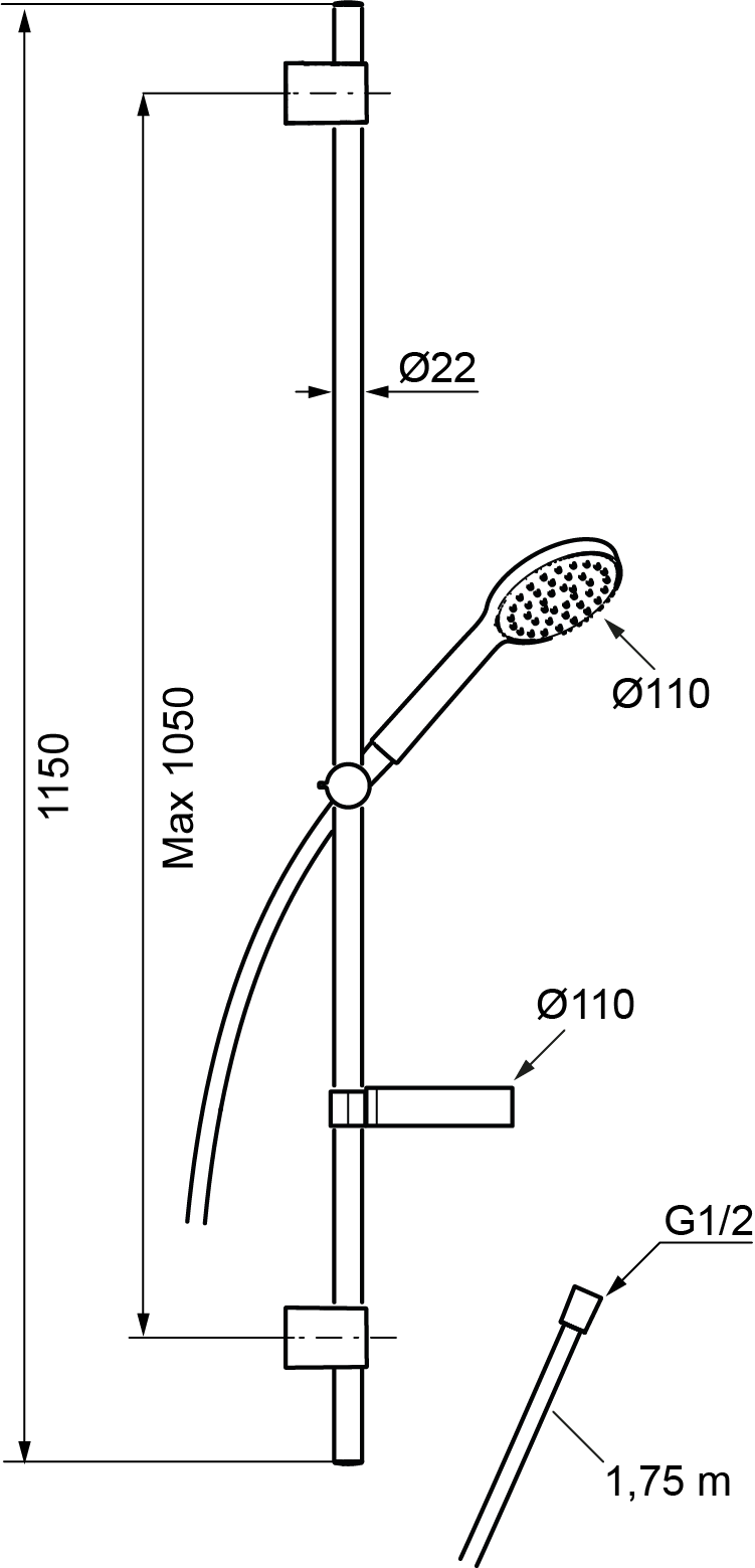 | 3 | S600109.75 | 8252038 | Duschslang, 1,75 m, borstad krom |