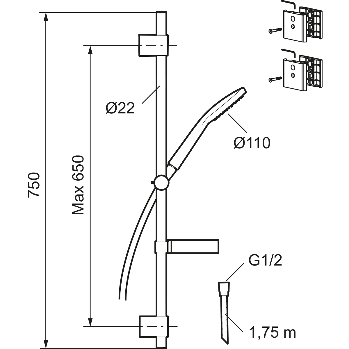 9000XE Duschset är ett duschset i krom med metallslang och justerbara väggfästen. Det generöst tilltagna munstycket ger en behaglig duschupplevelse med bra tryck och spridning utan att slösa på vattnet. Duschsetet monteras enkelt i alla typer av badrum och innehåller extra väggfästen för montering på inloppsrör.