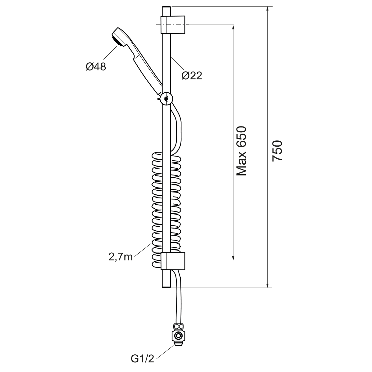 - Passar till duschblandare med anslutning G1/2 nedåt