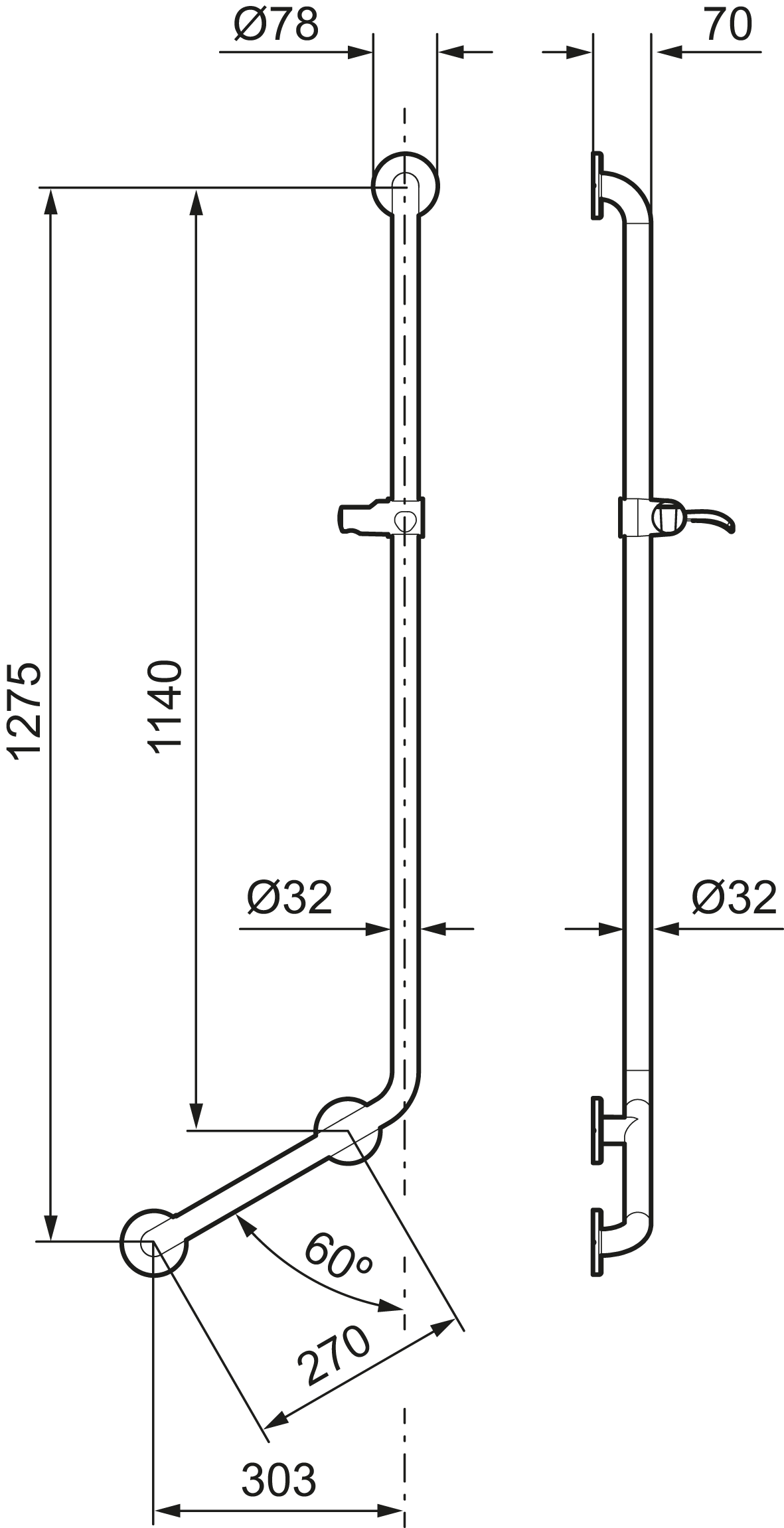 - Duschstång med integrerat stödhandtag